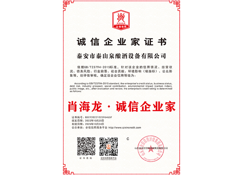 泰安市泰山泉釀酒設(shè)備有限公司,是一家專業(yè)從事釀酒設(shè)備機械化研發(fā)并集技術(shù)咨詢,工程設(shè)計,制造安裝,人員培訓(xùn)及售后服務(wù)為一體的綜合性企業(yè),本公司主要產(chǎn)品為:大曲清香、小曲清香、大曲醬香、大曲濃香等香型白酒機械化設(shè)備。 本公司與中國科學(xué)院自動化研究所簽訂技術(shù)服務(wù)合同,引進(jìn)先進(jìn)技術(shù),研究生產(chǎn)全自動化機械釀酒設(shè)備,由中國科學(xué)自動化研究所的技術(shù)支持,打造最先進(jìn)的生產(chǎn)釀酒設(shè)備,公司有信心打造全國最先進(jìn)白酒...